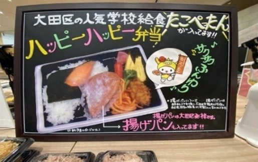 志茂田小学校の児童たちと地域で親しまれている「たこぺったん」をさらに広めるため、大田区発祥の「たこぺったん」と「揚げパン」を組み合わせた「ハッピーハッピー弁当」を開発、イトーヨーカドー大森店にて期間限定で販売。