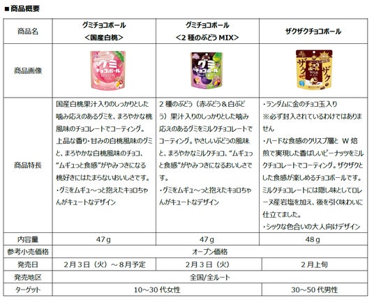 また、大人向けのハードな食感が特長の「ザクザクチョコボール<ピーナッツ>」に金のチョコ玉をランダムに封入して、2月上旬よりリニューアル発売します。「チョコボール」は「くちばし」(開け口)にある“金”のエンゼル1枚、または“銀”のエンゼル5枚を集めると必ずもらえるおもちゃのカンヅメが大変好評です。そこで、「金」を見つけた時の楽しさを「ザクザクチョコボール」でも感じていただきたいと考え、ランダムに金のチョコ玉を封入しました。また、平成初期に一世を風靡した「キョロちゃんショップ」シリーズから「復刻版!縁起ものキョロちゃんストラップ」が当たるキャンペーンを開催することで、大人に向けた商品の発売や大人には懐かしい賞品が当たるキャンペーンの開催により、お客様に笑顔をお届けします。