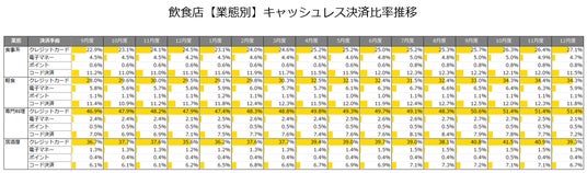 また、コード決済比率が一番高い持ち帰り業態では、その割合が14.7%となる。