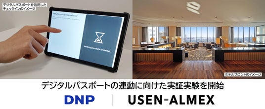 大日本印刷株式会社(本社:東京都新宿区 代表取締役社長:北島義斉 以下:DNP)と、USEN&U-NEXT GROUPの株式会社USEN-ALMEX(本社:東京都品川区 代表取締役社長:坪井将之 以下、USEN-ALMEX)は、ホテルのデジタルトランスフォーメーション(DX)に向けて、デジタルパスポートを活用した新たな取り組みを開始します。