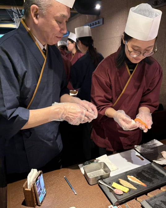 コロワイドダイニングが展開する一部店舗では、体験型コンテンツとして「寿司握り体験」を実施しています。本企画では、職人による丁寧な指導のもと、