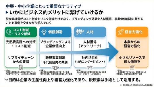 「経営力強化」や「生産性向上」などのビジネスメリット創出が目的であり、脱炭素は手段。