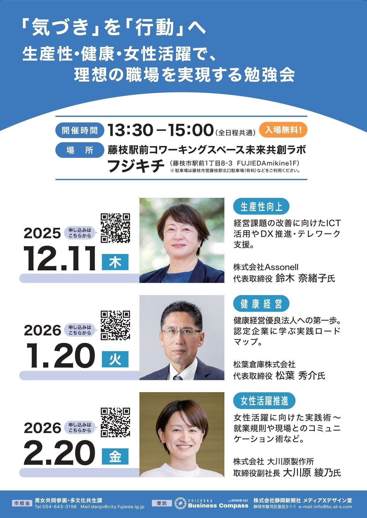 対 象:藤枝市働きやすい職場環境認定事業所のほか、藤枝市内及び近郊の経営層、管理職、