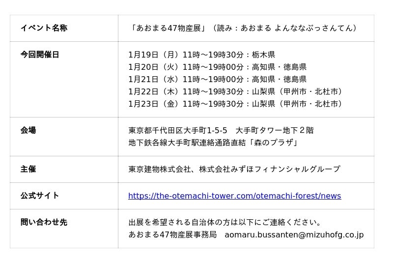 ・ 47都道府県の名産品を集めた「あおまる47物産展」を大手町タワーで2025年1月より定期開催