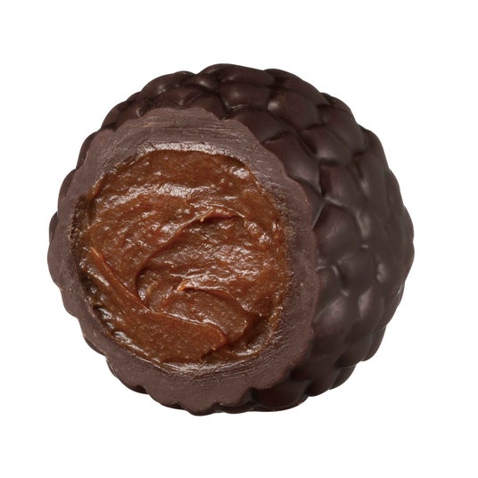 まろやかでクリーミーなミルクチョコレートのシェルに包まれているのは、香ばしく濃厚なヘーゼルナッツのガナッシュです。上品な口あたりの中に、ひと口で心を奪われるようなインパクトが広がり、ナッツの力強い香りと深みが余韻として残ります。