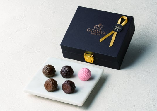 地球が育んだ宝石、カカオ。ゴディバの創業100周年を祝して、世界の舞台で活躍するスターシェフ5人がカカオへの深い敬愛を込め、それぞれの感性で創り上げた限定トリュフが誕生しました。本コレクションの中核を担うスターシェフの内の1人、ピエール・マルコリーニ氏は「ゴディバの最大の特長のひとつがトリュフ。香り高い食材『トリュフ』にインスピレーションを受けた、不均一でラフな新しい形は、クラシックなトリュフに現代的なタッチを加えつつ、同時に、より構造的でモダンな意味を持たせています。」と語ります。同一のフォルムでありながら、ひと粒ごとにそれぞれのスターシェフの感性輝く、カカオの深い味わい。それらを、真っ黒な黒トリュフのようなシックな箱に詰め、特別なアソートメントとしてお届けします。