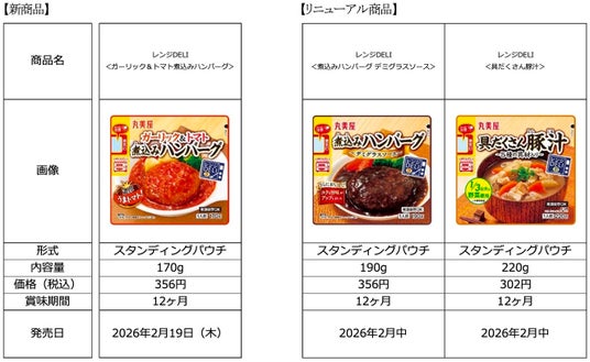 丸美屋食品工業株式会社(本社:東京都杉並区、社長:阿部豊太郎)は、すぐに食べられる惣菜需要に応える「レンジDELI」シリーズより新商品とリニューアル商品を2026年2月19日(木)より発売いたします。