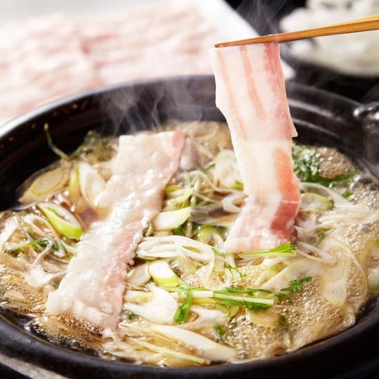 ほろよいとんを薄切りでさっとくぐらせ、野菜を包んで味わう当店の名物鍋。やわらかな肉質と上品な脂の甘みをお楽しみください