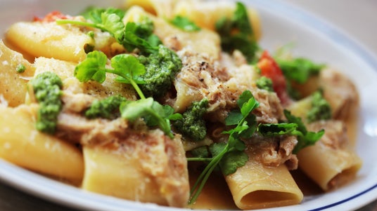 ● 比内地鶏と三関せりのダブルジェノベーゼパッケリ ¥3,200