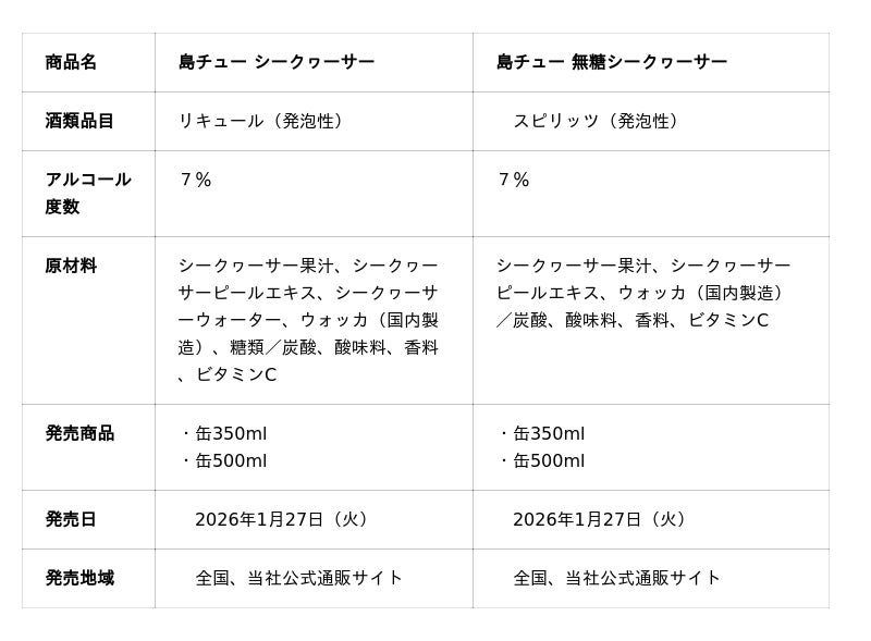 オリオンビール株式会社(本社:沖縄県豊見城市、代表取締役社長 兼 執行役員社長 CEO 村野 一)は、新しいチューハイブランド「島チュー」より、「島チュー 無糖シークヮーサー」「島チュー シークヮーサー」を、2026年1月27日(火)より全国で新発売いたします。