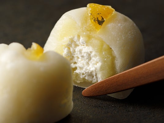 加賀野菜の五郎島金時の餡と、つば屋オリジナルの豆乳クリームを入れたふんわり優しい甘さの大福。金沢ゆずの食感と甘酸っぱさがアクセント。軽い口当たりの中、おいもの甘さをより引き出している大福です。