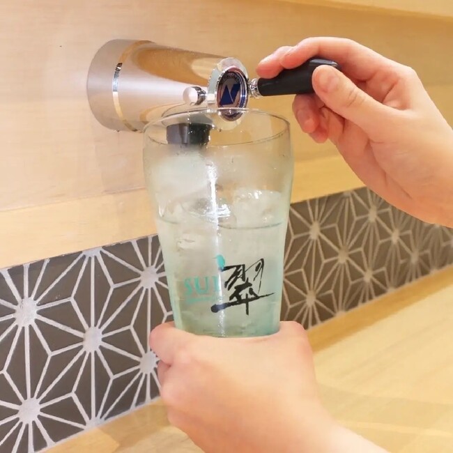 「せっかくだから、遠慮も躊躇もいらない。支払いさえも気にせず、とにかく翠ジンソーダ&鮪のコラボを堪能してほしい」。そんな思いを胸に、全テーブルにサーバー設置を実現。