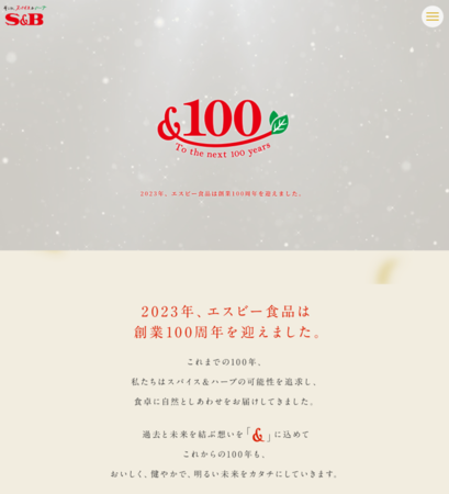 エスビー食品株式会社は、2023年に創業100周年を迎えました。1923年に創業者・山崎峯次郎が日本初の国産カレー粉の製造に成功して以来、当社グループを支えて下さった皆様に厚く御礼申し上げます。2023年の一年間を通して、皆様に感謝の気持ちをお伝えするさまざまな取組みを実施いたします。その第一弾として、記念サイトと記念動画を公開しました。