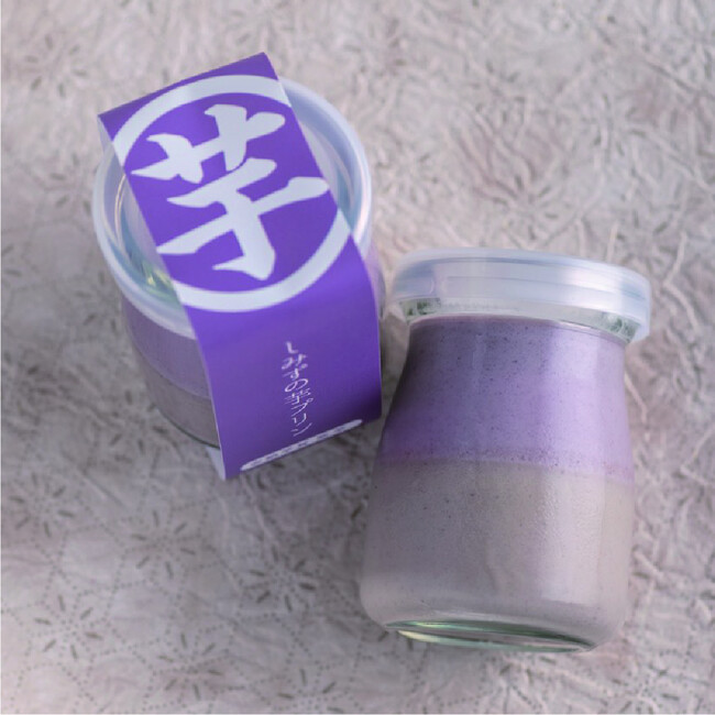 芋のペーストがとプリンが二層にわかれており、中には角切りのりんごが入っています。りんごの食感と二つの味が楽しめます。