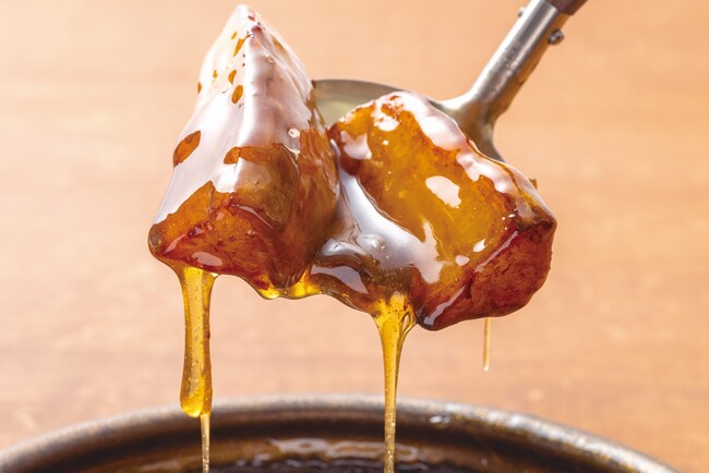甘く仕上がった濃密焼き芋を高温でさっと揚げ、蜜をたっぷりかけて大学芋に仕上げ、口の中でとろける食感を生みだしました。