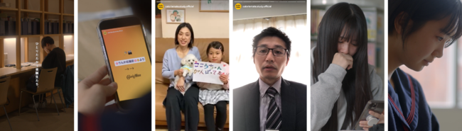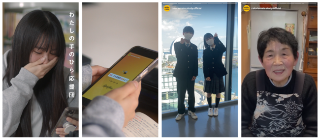 大学受験を控え、孤独と不安を抱えながら、ひとりたたかう受験生たち。休憩中にスマホを手にとり、SNSのストーリー投稿を見ていると、カロリーメイトのアカウントからサプライズで、家族や先生、友人など、仲間からのメッセージ動画が次々に映し出されます。その映像には、「心から応援しています」「毎日頑張ってきたあなたを誇りに思っているよ」など、普段はあまり聞くことのない、自分への真っ直ぐな応援の気持ちが。受験生の一番そば、手のひらのスマホに届いた、応援団からの真っ直ぐなエールと、受験生たちの等身大のリアクション、溢れる想いが収められています。