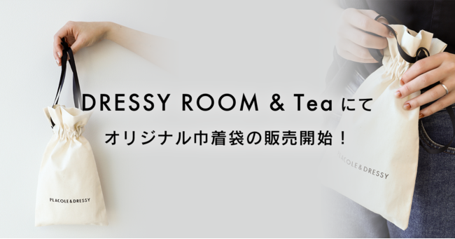 2022年鎌倉由比ヶ浜にオープンしたカフェ"お花と紅茶とお菓子のお店- DRESSY ROOM&Tea" 店頭と専用ECサイト『DRESSYONLINE』にて、PLACOLE&DRESSYロゴの入った『オリジナル巾着袋』の発売がスタート。今回の巾着袋は、「オリジナルティーをもっと多くの方に楽しんでいただきたい」「PLACOLE & DRESSYを皆さまの生活の中に取り込んで、毎日の生活に彩りやきらめきをもたらしてほしい」という思いのもと出来上がったアイテムです。
