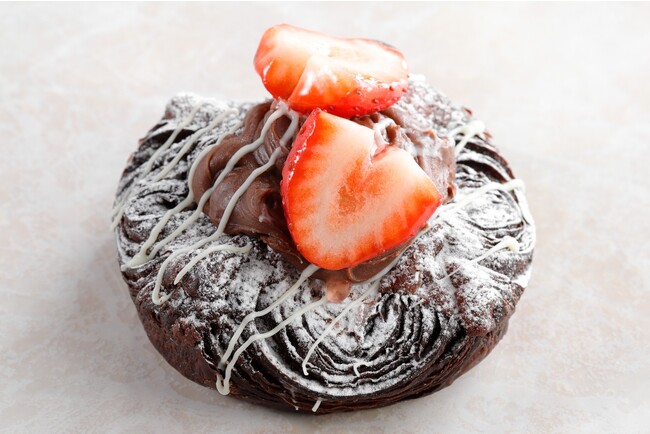 サクサクのココアデニッシュに口どけの良い生チョコレートといちごをトッピングしました。