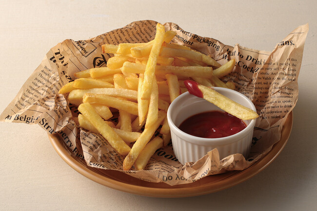 ケチャップに「CHILLIES!」をまぜた、やみつきになるソースを添えたフライドポテト。ピエトロシェフの黄金比は「CHILLIES! 1:ケチャップ 6」です。
