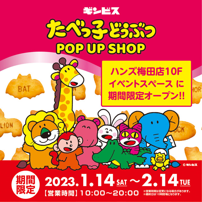 みんな大好き!ギンビスのロングセラー商品「たべっ子どうぶつ」をモチーフにしたグッズがハンズ梅田店10Fイベントスペース(大丸梅田店内10F)にやってくる!たべっ子どうぶつの魅力的なアイテムが期間限定で登場!ノベルティもご用意しております。