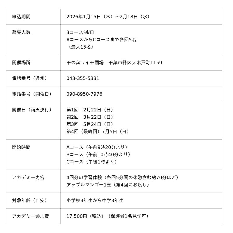千葉県千葉市で高級フルーツブランド「千の葉ライチ」を運営している株式会社フロッグキューブは、小中学生を対象とした「【千葉市で育つ南国の味!】マンゴー自由研究アカデミー ~温暖化時代の新しい農業体験~」の予約受付を本日より開始いたします。
