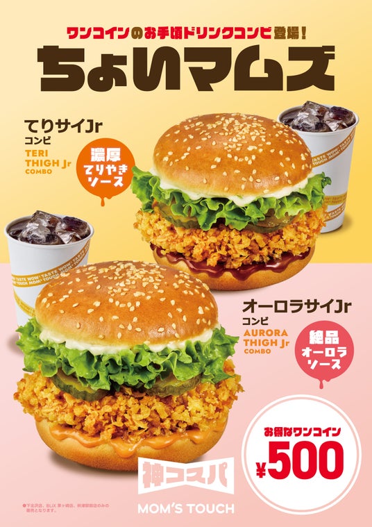 発売から2週間限定で、「サイJrバーガー+ドリンクのコンビ」を500円(税込) で提供するキャンペーンを実施します。軽食・間食シーンでも、より気軽にマムズタッチを体験いただける機会として展開します。