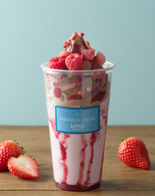 すっきりとした苺ミルクに、クレームグラッセ「ルショコラ」を絞り、甘酸っぱい苺のダイス、ラズベリー、フランボワーズソースをトッピングしました。ショコラの深い味わいに苺ミルクのまろやかさ、ベリーの酸味が調和したドリンクです。
