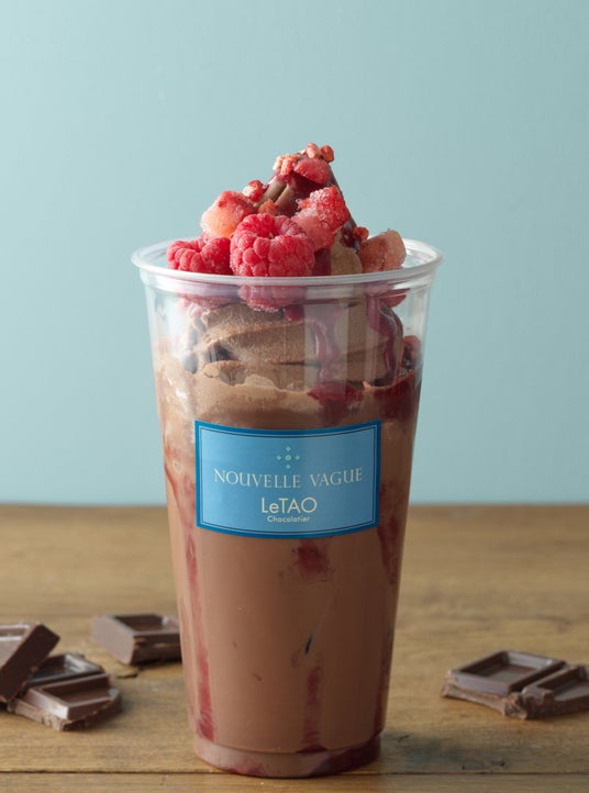 あっさりとした甘みのショコラドリンクに、クレームグラッセ「ルショコラ」を絞り、甘酸っぱい苺のダイス、ラズベリー、フランボワーズソースをトッピングしました。ショコラの深い味わいにベリーの甘酸っぱさが調和したドリンクです。