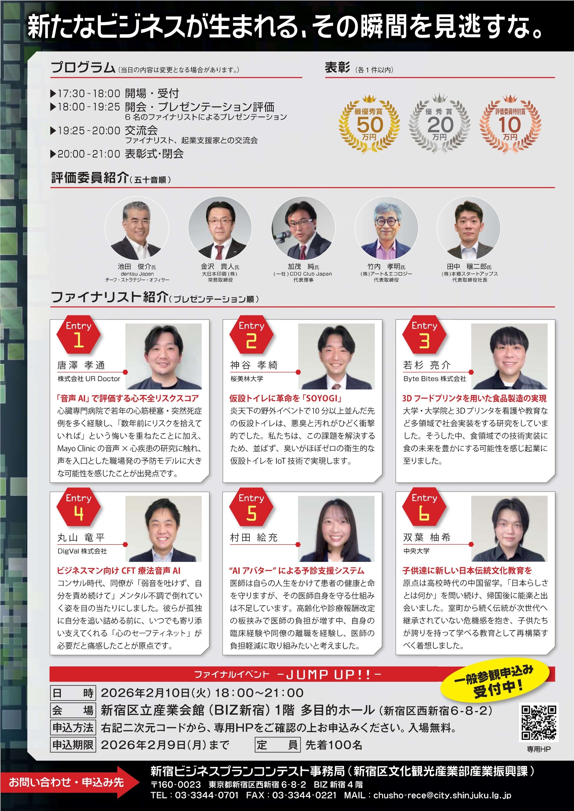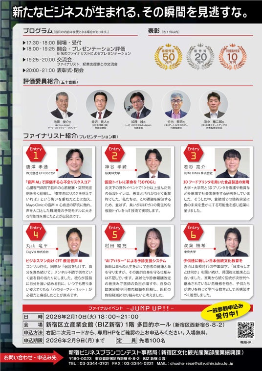 専用ホームページ(https://www.shinjuku-sda.com/)をご確認の上お申し込みください。ホームページにはファイナリストの紹介も掲載しています。