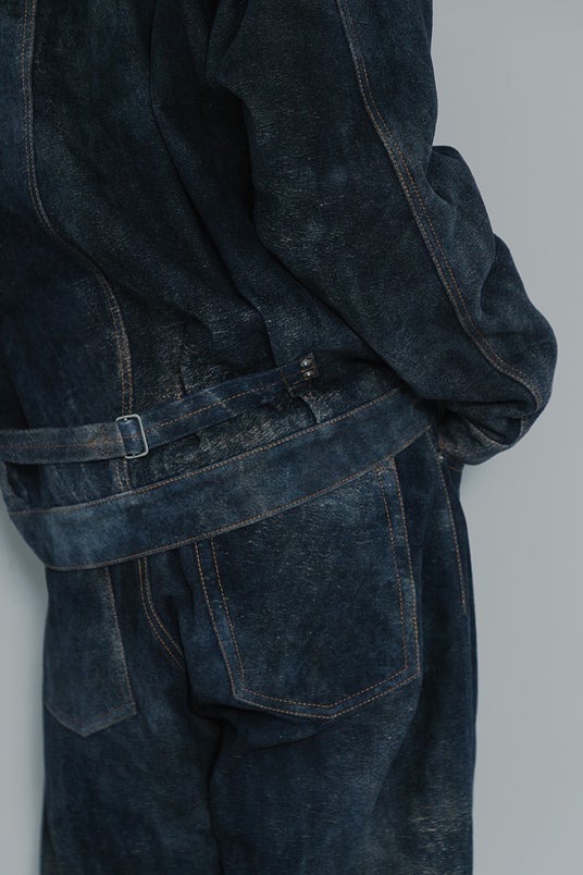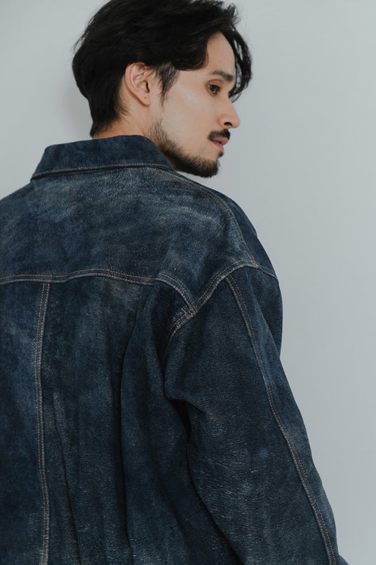 最大の魅力は、長年着込んだような深みのある表情を演出する特殊なアンティーク加工。ブランドが大切にする「カジュアルの中に見え隠れする上品さ」を体現したこのアイテムは、セットアップでの着用は勿論、上質なスラックスなど相反する素材とも不思議なほど調和します。