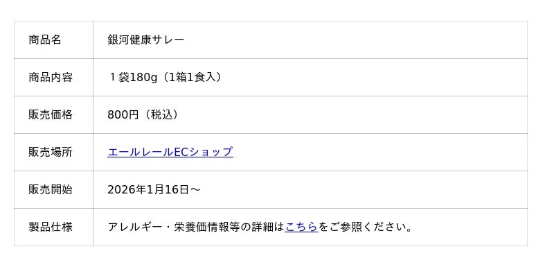 株式会社アド近鉄(大阪市天王寺区、取締役社長:村上正浩)は、2026年1月16日(金)から、サウナ好きの社員が開発した“ととのう”ためのサウナ飯「銀河健康サレー」をエールレールECショップで発売します。