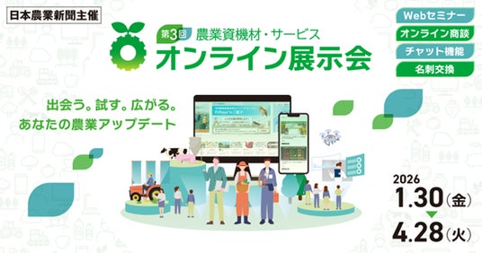 当社は、中期経営計画NX2028で「新領域への展開」を基本戦略の一つとし、新たな市場への挑戦を進めています。その一環として、日本農業新聞主催の「第3回 農業資機材・サービスオンライン展示会」に出展します。本展示会は、農業従事者や関連企業、自治体向けに、農業に役立つ資機材やサービスを紹介するオンラインイベントで、全国どこからでも参加でき、最新の技術や製品情報を得ることができます。当社ブースでは農業現場の課題解決に貢献する製品を紹介し、アンケートを通じて新製品へのご要望も募集しております。皆様の貴重なご意見を製品開発に活かしてまいりますので、ご協力のほどお願い申し上げます。「世の中の“キレイ”を支える会社」として、農業界の課題解決に貢献してまいります。皆様のご来場を心よりお待ちしております。