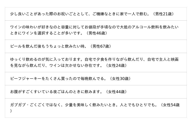 ☆他のアルコール飲料ではなく、ワインを飲む気分やタイミング(全3,503件)