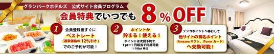 1)会員登録すれば、その場で8%OFFの会員価格でご宿泊可能