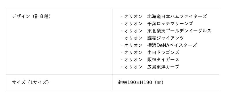 ■オリオン×球団 ハンドタオル全8種 各880円(税込)
