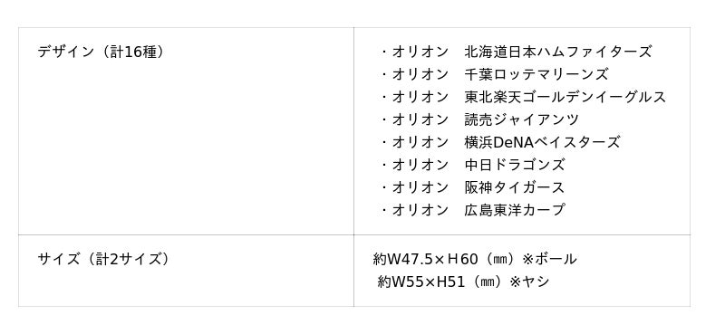 ■オリオン×球団 ステッカー(ボール・ヤシ)全16種 各660円(税込)