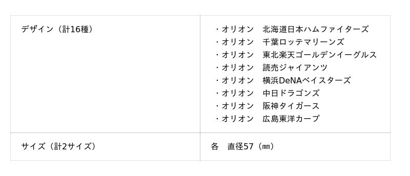 ■オリオン×球団 缶バッジ(缶1本・缶2本)全16種 各550円(税込)