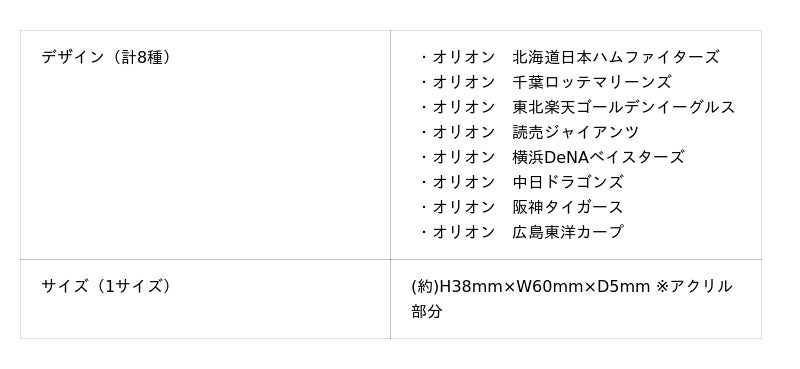 ■オリオン×球団 アクリル前髪クリップ 全8種 800円(税込)