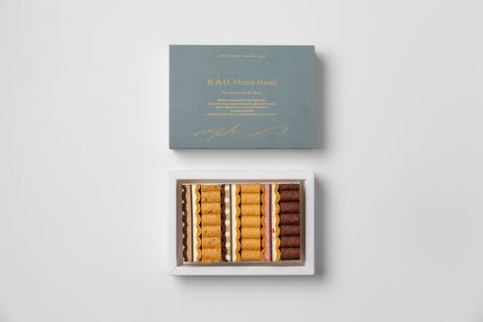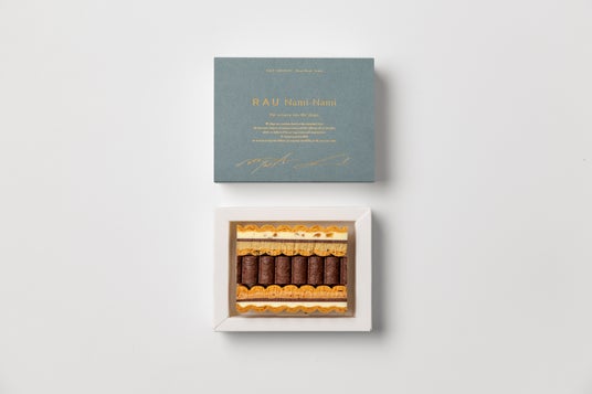 「Nami-Nami」は、日本とフランスの瓦屋根という共通文化からインスパイアされた波形のクリームサンドサブレです。チョコレートの産地であるコスタリカにシェフが直接赴いて選び抜いた有機カカオを使用したビーントゥバーチョコレートと、味わい深い様々な食感のクリームを挟んだRAUの人気商品。発売時から世代を超えて多くの人に好まれ、京都のお土産としても人気を博しています。