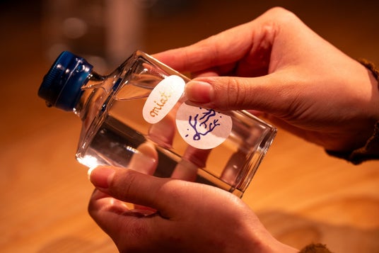 蒸溜を終えた液体を小瓶に詰め、ロウ付けを施す体験教室の仕上げの工程。