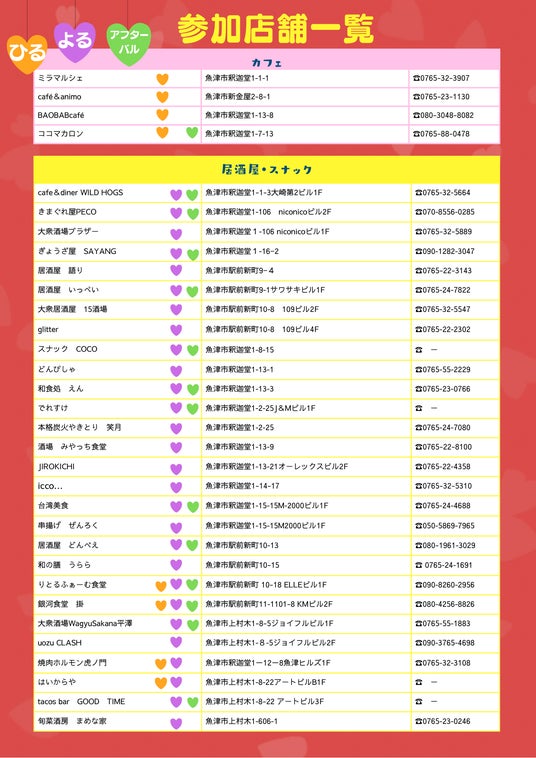 今回、「魚津バレンタインバル」の初開催を記念して魚津駅観光案内所前では振る舞い酒を行います。当日17時からはスパークリングワイン、18時からは日本酒(魚津酒造の新酒)をそれぞれ先着100名分用意して参加者をもてなします。また、Instagram(インスタグラム)でアカウント「魚津バル」をフォローされた参加者は、当日、魚津駅観光案内所でフォロー画面を提示すると地元のカフェ「HEAPS」のクッキーをプレゼントします。こちらも先着100名限定です。残ったチケットはアフターバルやタクシーで!