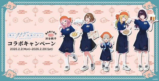 株式会社エムピーキッチンホールディングス(本社:東京都渋谷区、代表取締役CEO:鹿中 一志)が運営する『薄皮餃子専門 渋谷餃子』は、2026年2月2日(月)より、渋谷を舞台としたオリジナルTVアニメ『夜のクラゲは泳げない』とのコラボレーションキャンペーンを開催いたします。 作品の舞台(聖地)である渋谷に本店を構える当ブランドが、作中に登場するアーティスト「JELEE」やキャラクターたちをイメージしたコラボメニューを展開。視覚と味覚で作品の世界に浸れる特別な体験を提供します。