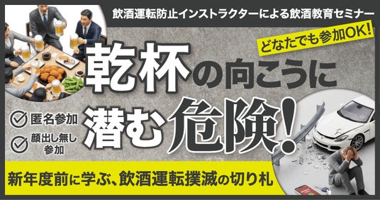 飲酒運転防止インストラクターによる飲酒教育セミナー どなたでも参加OK!乾杯の向こうに潜む危険!新年度前に学ぶ、飲酒運転撲滅の切り札 2月4日(水)
