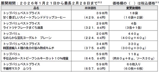 日々の買い物を通じて支出への関心が高まるなか、家計負担を意識し、これまで以上に計画的に商品を選ぶ動きが広がっています。こうした中イオンは、日常の食卓や家事に欠かせない商品を中心に「少しでも家計のお役に立ちたい」「いつもの商品が増量というちょっとした楽しみをご提案したい」「トップバリュ商品をお試しいただいたことのない方に、商品を知っていただくきっかけにしてほしい」という思いを込め、期間・数量限定で増量します。