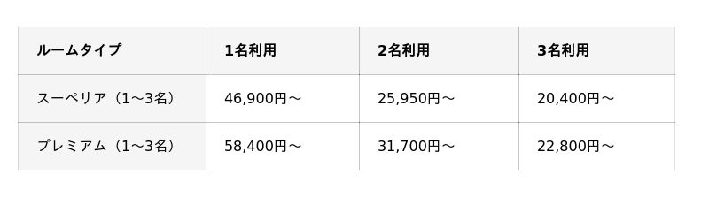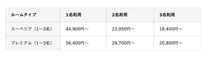 料 金:1泊あたりの1名様料金