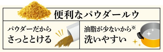 また、パウダータイプのため溶けやすく、油脂が少ない※3ので、使用した皿や鍋などの洗い物も簡単です。