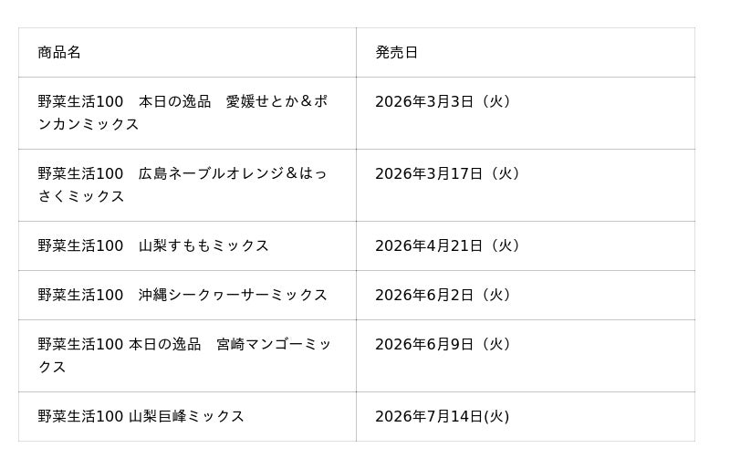 - 今後発売予定の「野菜生活100」季節限定シリーズ