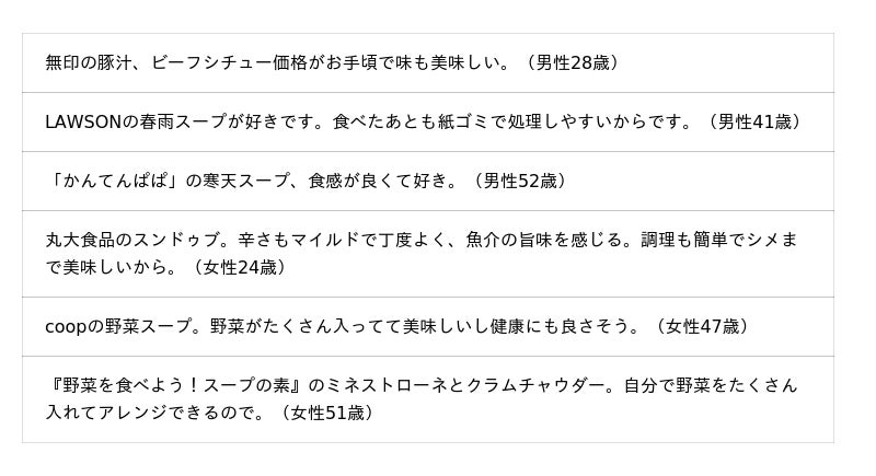 ☆市販のスープ・汁物で、好きな商品・よく食べる商品(全4,635件)