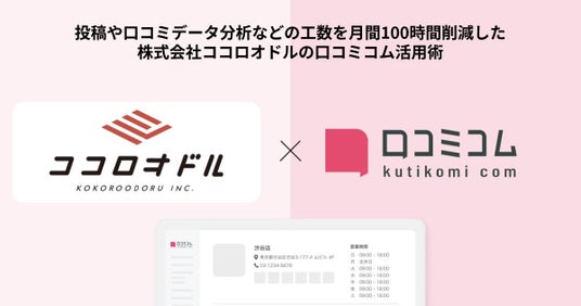 株式会社mov(代表取締役:渡邊誠、本社:東京都渋谷区、以下mov)は、株式会社ココロオドル(代表取締役:杉本 健司、本社:東京都新宿区)が、店舗・施設向け集客一元化プラットフォーム「口コミコム」を活用した、店舗運営やマーケティング施策への活用事例をご紹介します。