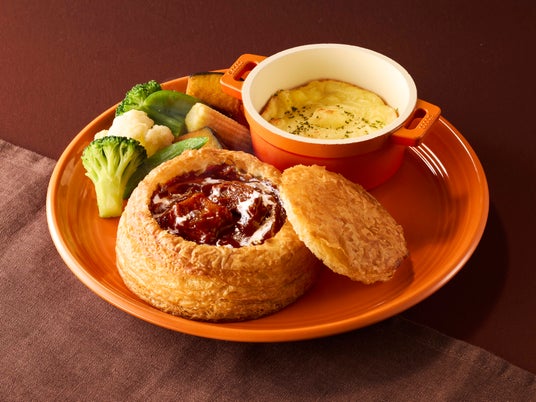 トーストしてサクサクに仕上げたココスオリジナルのデニッシュ“ココッシュ”に、濃厚ビーフシチューを合わせてシチューパイ風に仕上げました。ほんのり甘いココッシュが濃厚なビーフシチューとマッチします。